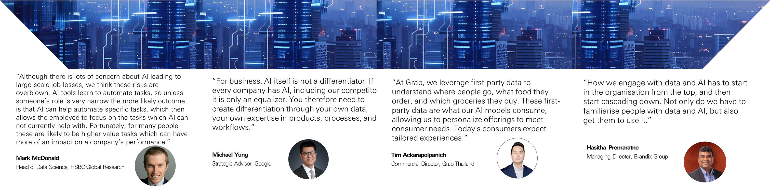 At a recent “AI for Business – Reimagining Tomorrow” webinar, we have invited speakers from HSBC Global Research, Google, Grab and Brandix to share their thoughts on how AI can be applied in various sectors.